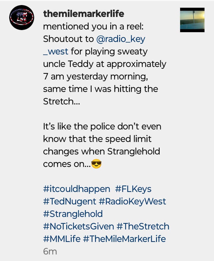 As I go every year to Marathon Fla to stay with my mom for 4 months. This is the only radio station I will listen to!"